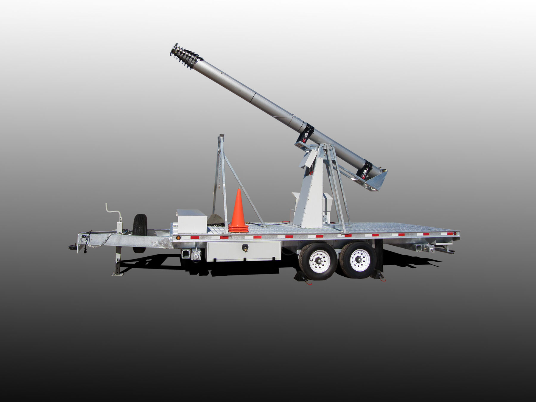 The Sun West Cell On Wheels (COW) is a portable telescoping tower/mast and/or cell site mounted on a trailer that can easily be deployed for special events, network restoration or disaster recovery efforts. We have designed them to provide an industry standard platform to accommodate customer equipment such as generators and equipment cabinets.
