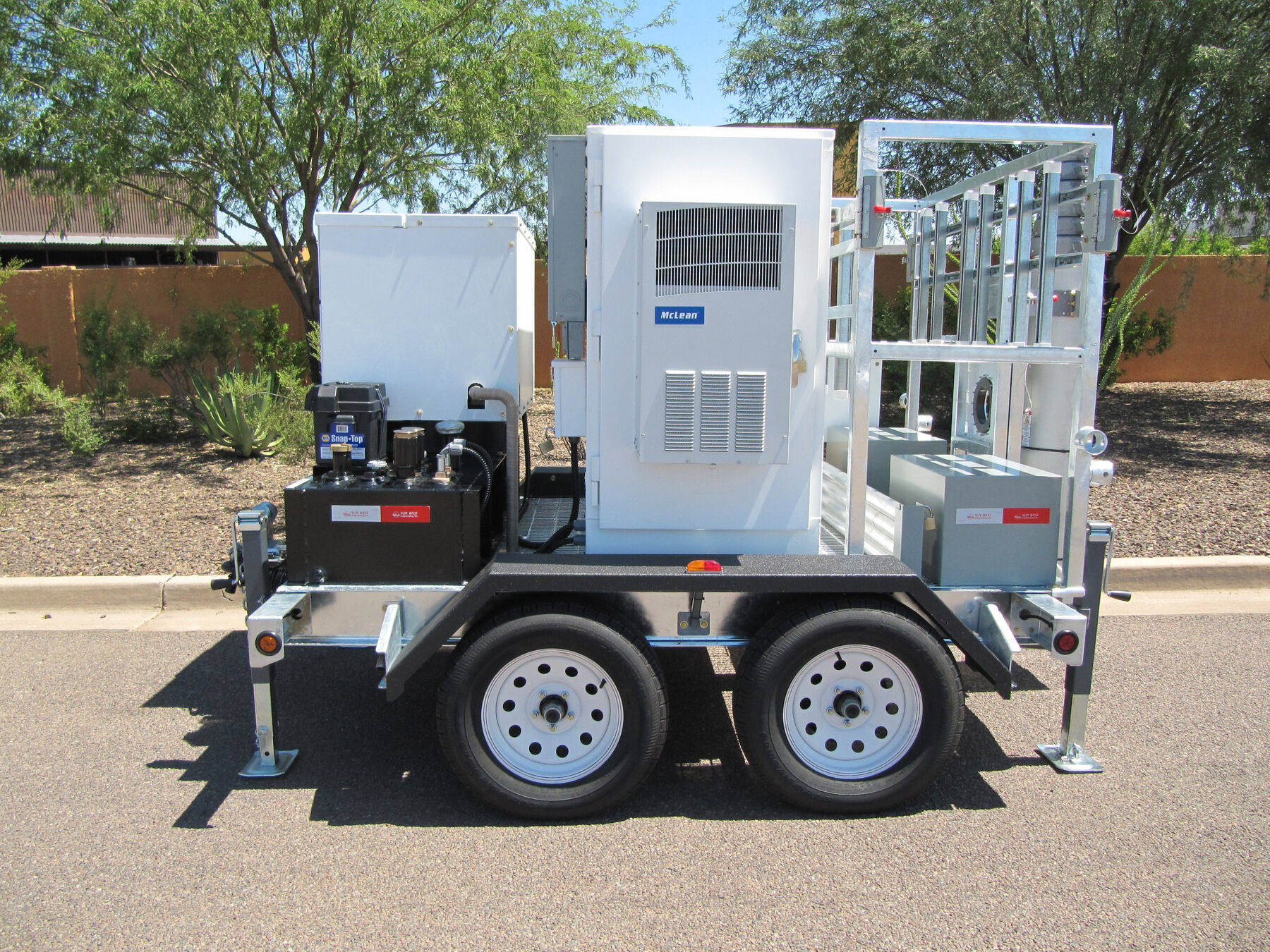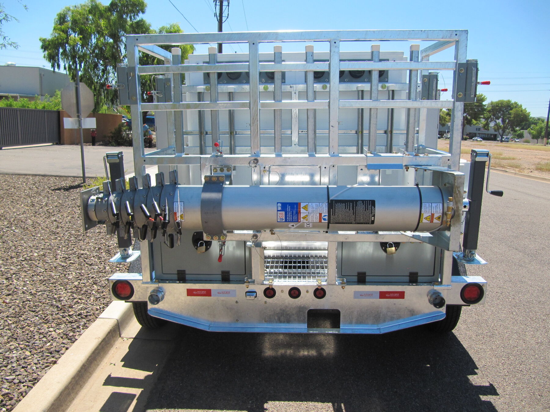 - 13’ 8,000-lb. GVWR DOT Approved Trailer “Manufactured by Sun West Engineering, Inc.” (8’ long with tongue retracted)