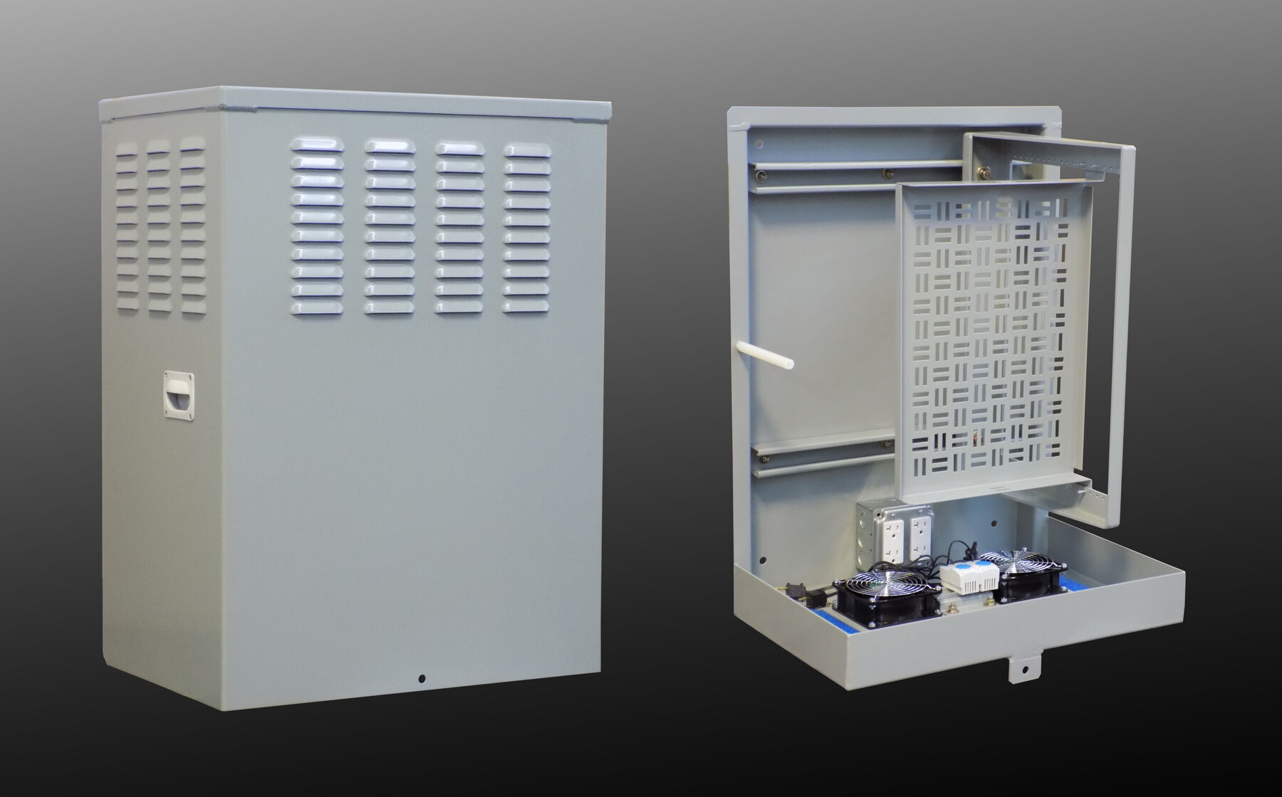 Our Walk Up or In-Line equipment cabinets are an industry proven product designed specifically to accommodate challenging requirements in permanent wireless applications. Each configuration is designed to withstand wind driven rain, vibration, drop, thermal and seismic Zone-4 standards. Each cabinet is quality constructed per NEMA 4/3R (National Electrical Manufacturers Association) outdoor use standards.