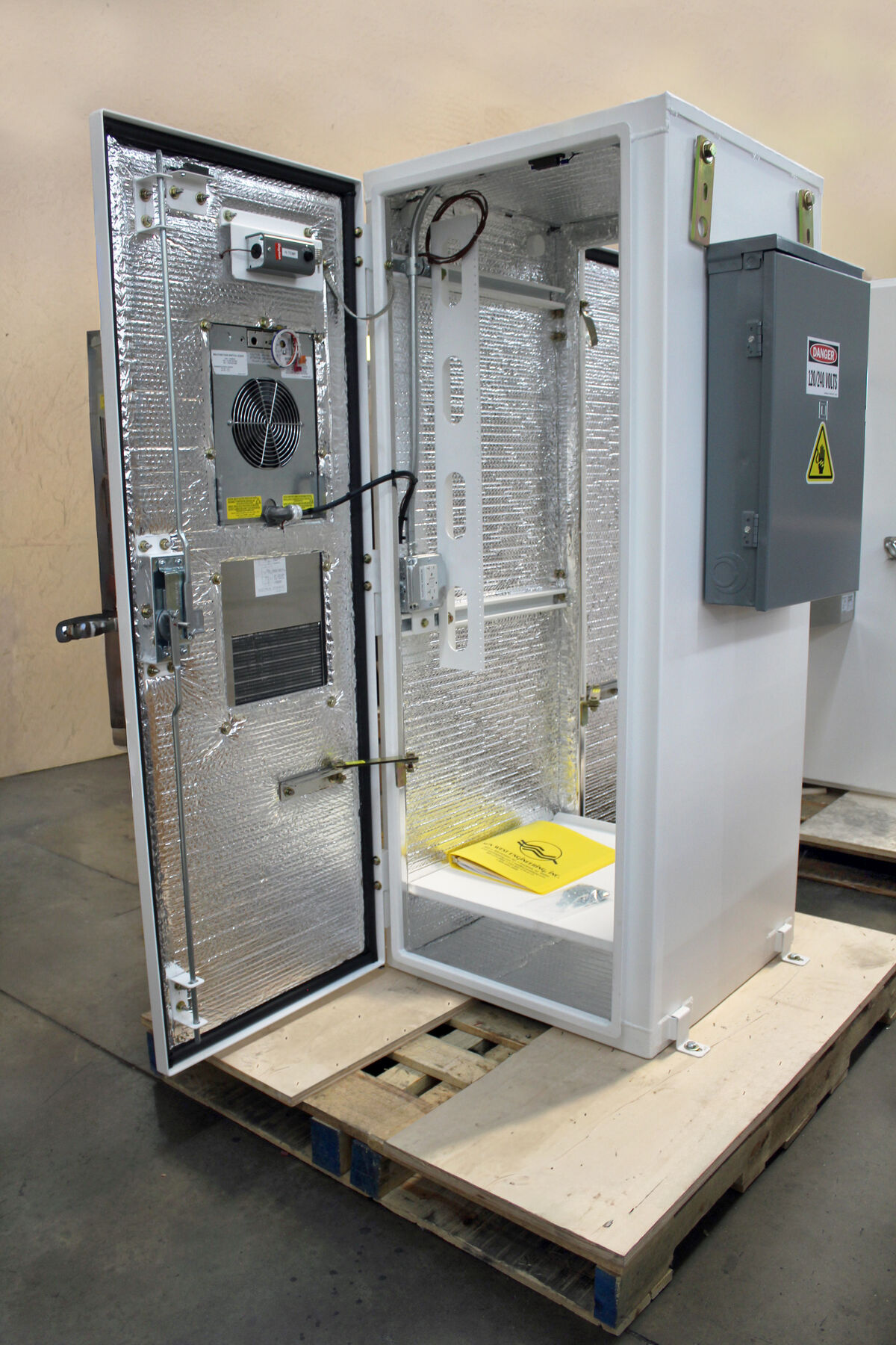 Our Custom Cabinet Solutions continue to be an industry proven product designed specifically to accommodate challenging requirements in permanent wireless applications. Each configuration is designed to withstand wind driven rain, vibration, drop, thermal and seismic zone 4 standards. Each cabinet is constructed per NEMA 4/3R Standards for outdoor use (National Electrical Manufacturers Association)
