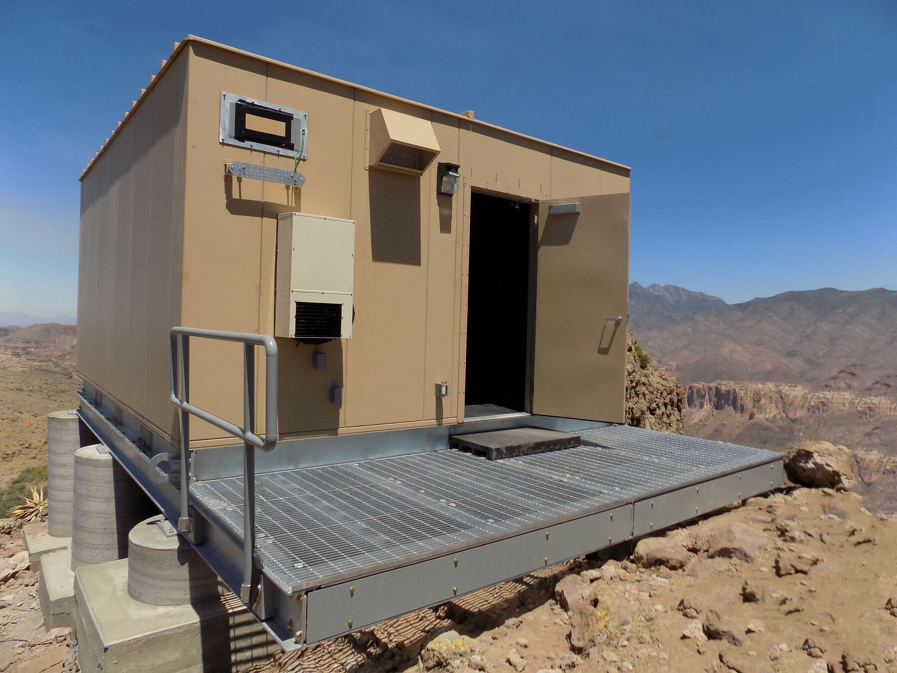 Additionally, these cabinets can be assembled on site in restricted locations such as rooftops, inside of other structures or on isolated mountaintops otherwise not feasible and/or accessible with alternate solutions. Each configuration is UL® listed and designed to withstand wind driven rain, vibration, drop, thermal and seismic Zone-4 standards. Each cabinet is constructed per NEMA 4/3R standards (National Electrical Manufacturers Association) for outdoor use.